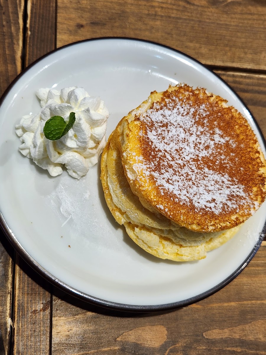 Shounan PANCAKE is celebrated for its signature CAFE PANCAKE SET, available from 14:00 onwards. For only JP¥720, you can delight in a fluffy pancake accompanied by a selection of drinks, including coffee (both hot and iced), tea, café latte, milky tea, or refreshing juices. The pancake's texture is truly cloud-like; each bite melts in your mouth, offering a sense of bliss that lingers well beyond the taste itself.